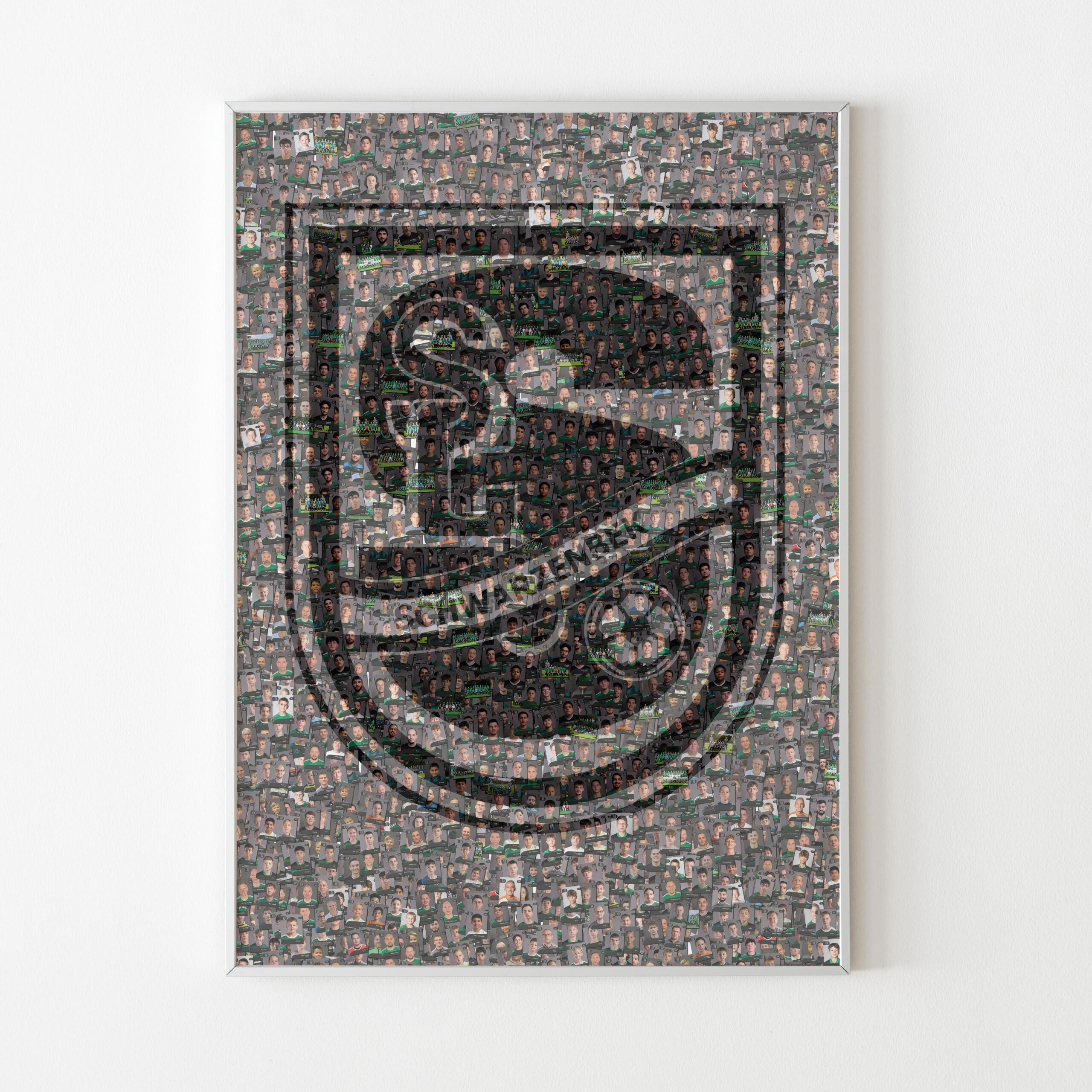 Das Logo des SC Schwarzenbek als Poster zusammengesetzt aus den Sammelstickern der Vereinsmitglieder!