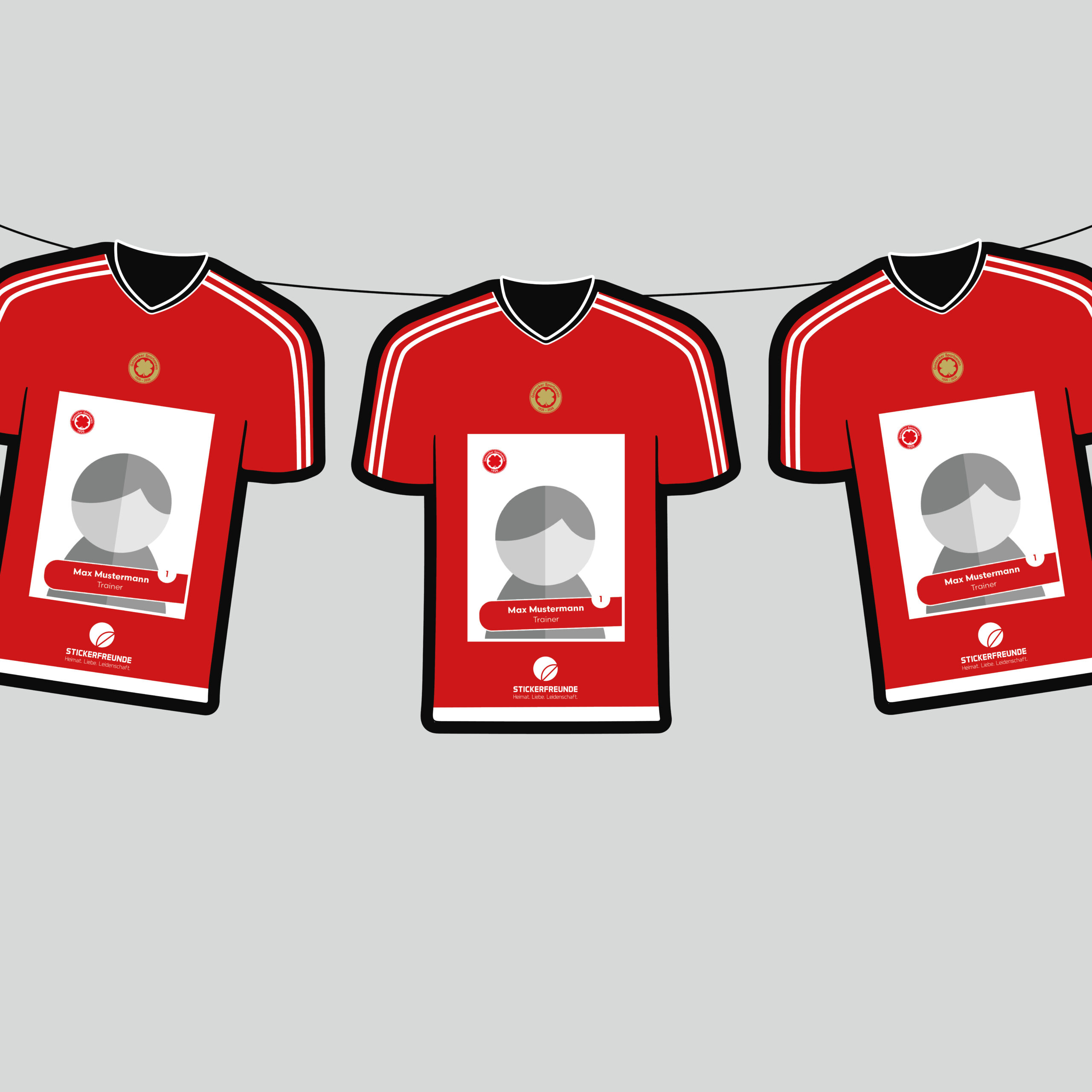 Team-Girlande: Anzahl der Trikots richtet sich nach Teamgröße – jedes Trikot zeigt jeweils ein Teammitglied.