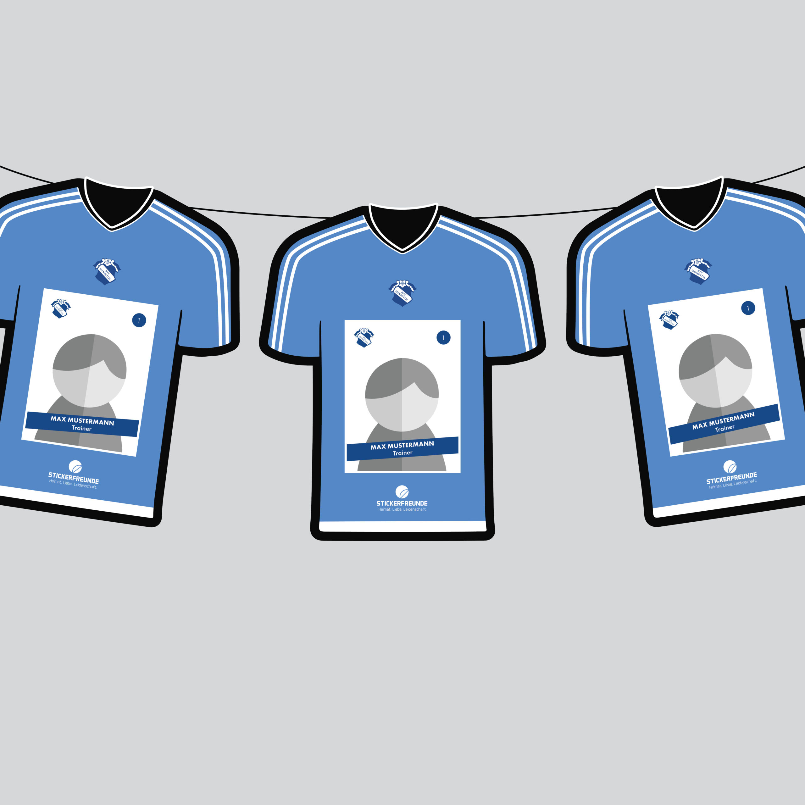 Team-Girlande: Anzahl der Trikots richtet sich nach Teamgröße – jedes Trikot zeigt jeweils ein Teammitglied.
