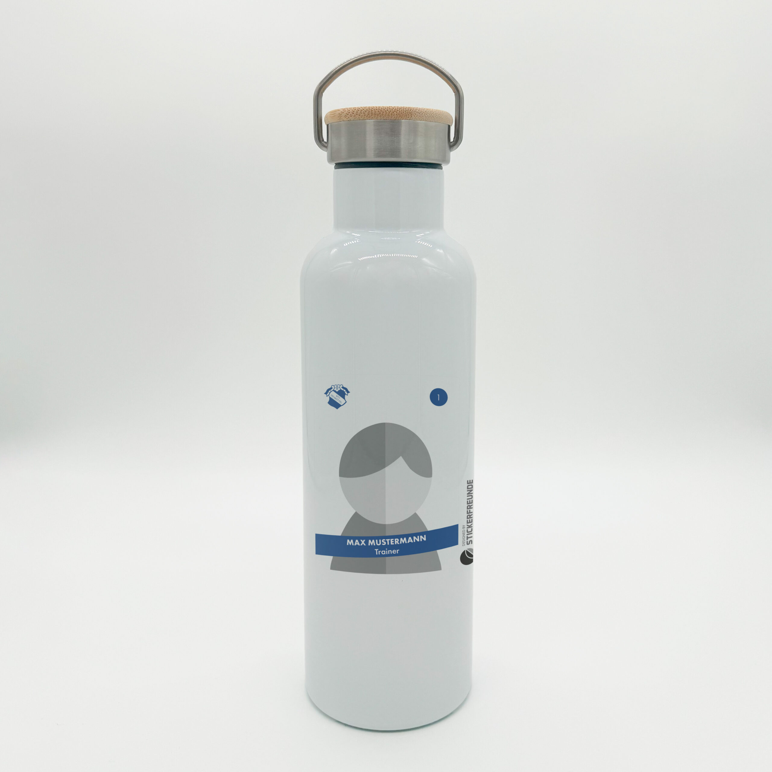 Edelstahl Thermoflasche mit Bambusdeckel und Henkel, 0,75 l, weiß